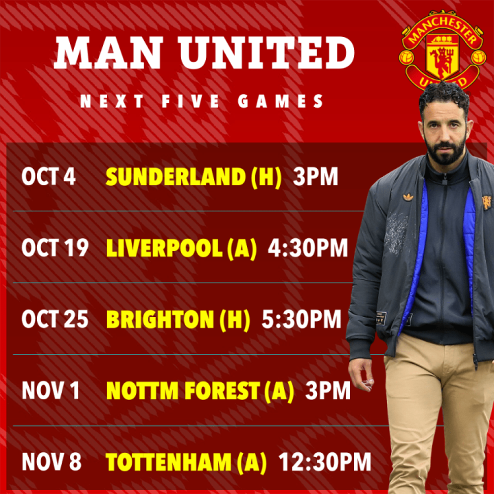 阿莫林表示自己仍然有信心能让曼联重新成为一支具有竞争力的球队,但他接下来的比赛场场都是恶战。打完气势汹汹的「黑猫」桑德兰后,曼联的对手是利物浦、布莱顿、诺丁汉森林和热刺。