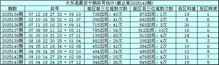 大乐透第2025144期前区前后三码定位分析:
