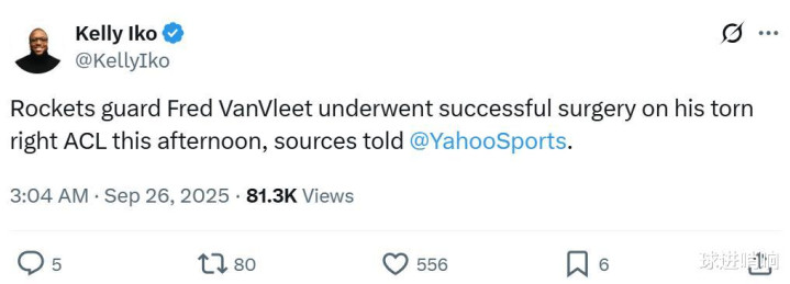 尽管根据火箭随队记者Kelly Iko报道,范乔丹已经成功接受右膝前交叉韧带撕裂修复手术,但预计也将缺席新赛季。