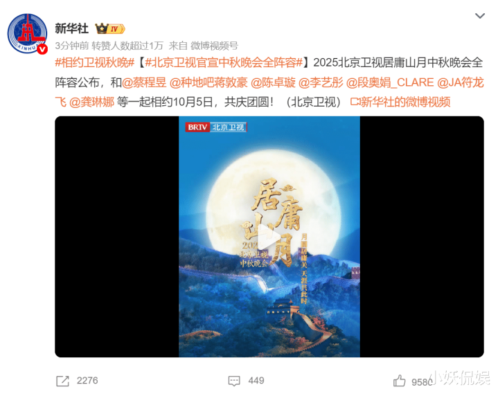 从双巨头的家国深情到国际巨星的跨文化演绎,从国粹经典到青春表达,北京卫视中秋晚会的阵容恰是一幅 “多元团圆图”。