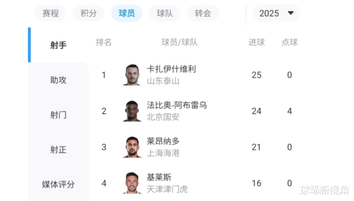 中超第29轮,山东泰山2-1战胜天津津门虎,卡扎伊什维利在本场比赛打进一球,以25球继续领跑中超射手榜,而在联赛仅剩一轮,以及领先法比奥一球的情况下,卡扎伊什维利无疑成为了本赛季中超准金靴。